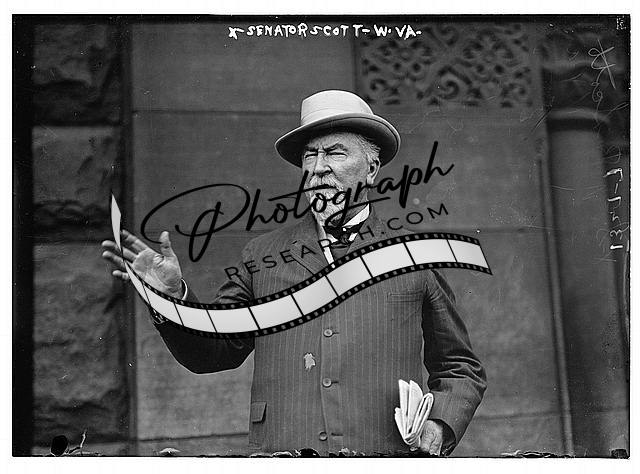 Ex-Senator Scott,West Virginia,waving hand,holding papers,squinting,Bain News