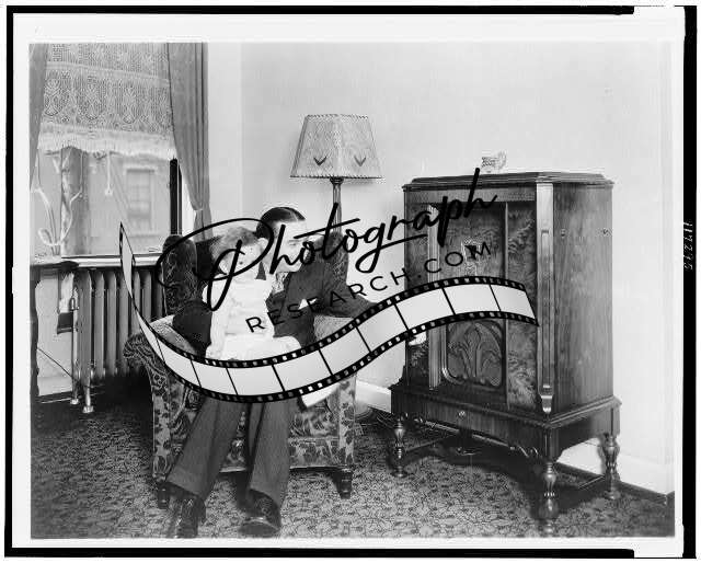 Jan & Janis Garber listening to Majestic Radio,c1930,Child,Heater,Lamp