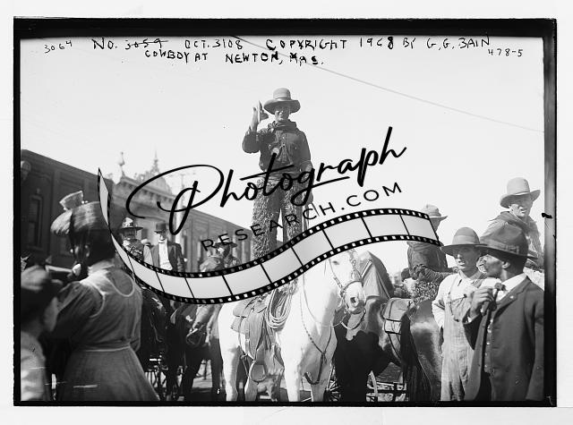 Cowboy in saddle on horse,Newton,Middlesex County,Massachusetts,MA,1908