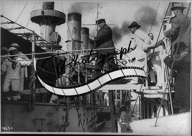 Title: [William Howard Taft, 1857-1939, full length portrait, walking, facing left, on gangplank between ships; inspection tour of Panama Canal, 1907]