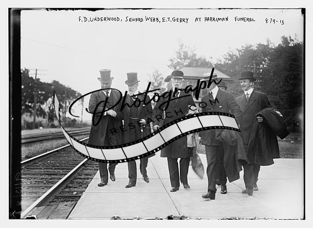 F.K. Underwood,Seward,Webb,E.T. Gerry,on train tracks for Harriman funeral,1909