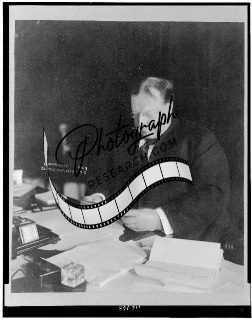William Howard Taft reading at desk in White House,President of United States
