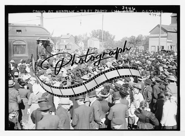 President William Howard Taft speaking,train,locomotive,October 1908,Norfolk