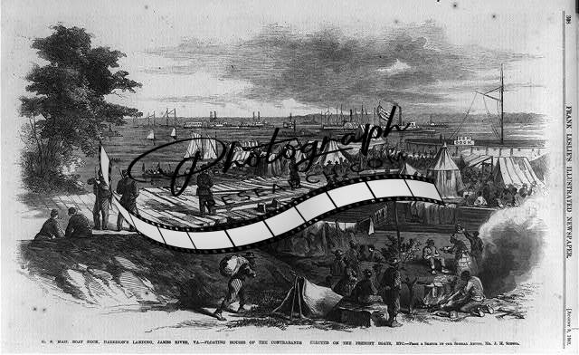 US Mail Boat Dock,Harrison's Landing,James River,Virginia,Floating Houses,1862