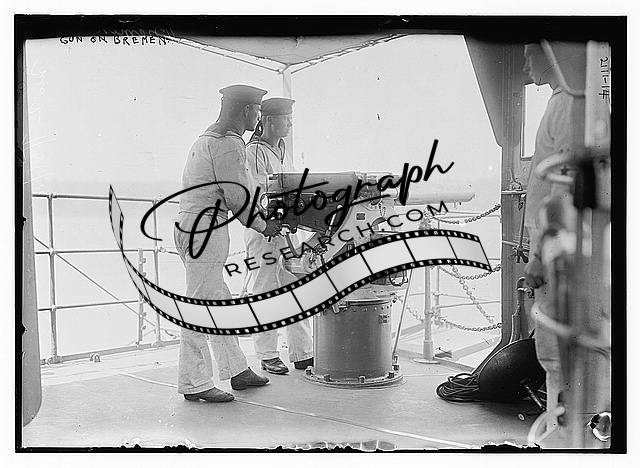 Gun on Bremen,BREMEN,ship,sailors,artillery,Bain News Service