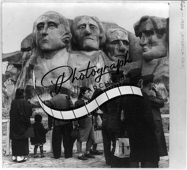 Replica of the Mt. Rushmore memorial in South Dakota, one of the exhibits portraying U.S. history and notable scenes at the America fair, which opened in Osaka, Japan, in March 1950.