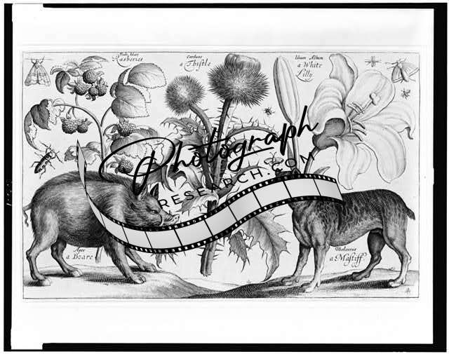 Boar,mastiff,thistle,raspberries,lily,moths,insects,Wenceslaus Hollar,Swine