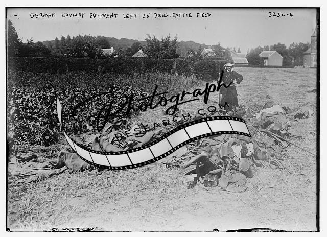 German Cavalry equipment left on Belgian Battle Field,man,pile of things