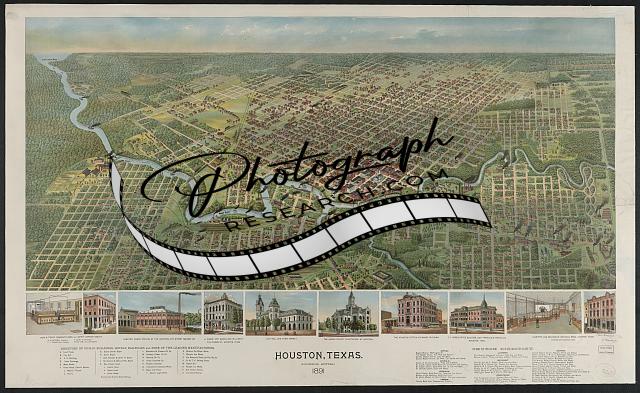 Houston,Texas (looking south) 1891,founded in 1836,birdseye view,landscape