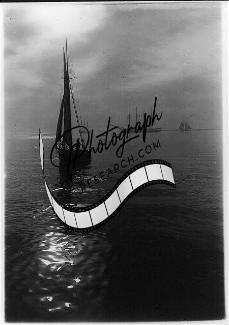 Sailing ships at anchor,Portland Harbor,Maine,ME,1909