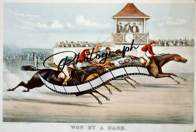 Won by a dash,Currier & Ives Photo,Horse Racing,spectators,c1892,John Cameron