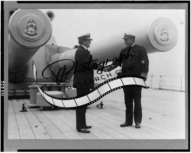 Admiral David Beatty,Hugh Rodman shaking hands,flagship Queen Elizabeth,1917