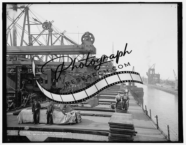Unloading ore,Conneaut,Ohio,Brown conveying hoists,industry,shipping,OH,1900