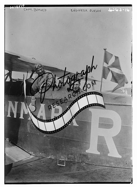 Captain Botoed,Engineer Oleson,pilots,airplanes,cockpit,flag,Bain News Service
