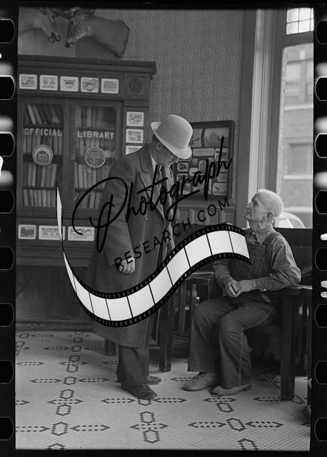 Two men talking in the Great Northern Hotel,Williston,North Dakota,ND,FSA