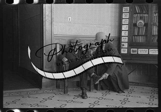 Two men talking in the Great Northern Hotel,Williston,North Dakota,ND,FSA,1