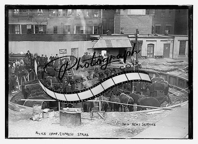 Police camp,express strike,horses,crowd of men,Bain News Service