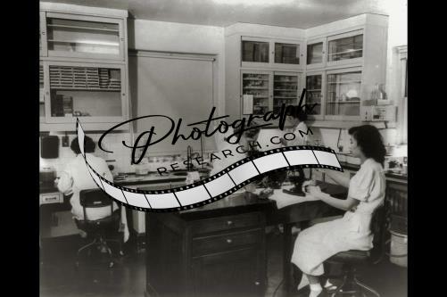 Summary: 3/4 lgth., seated at his desk, facing left. Chemist?