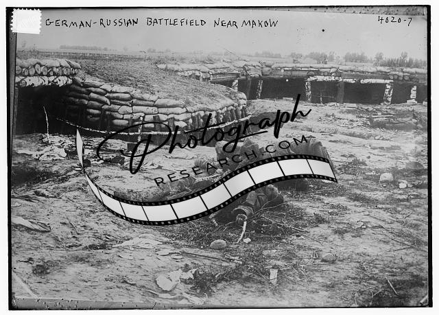 German - Russian Battlefield Near Makow,dead bodies,trenches,Military,Bain News