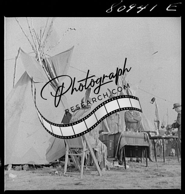 Title: This Woods Indian had a busy day selling popcorn and birch bark novelties. Local Indian association-sponsored Indian fair. Windsor Locks, Connecticut