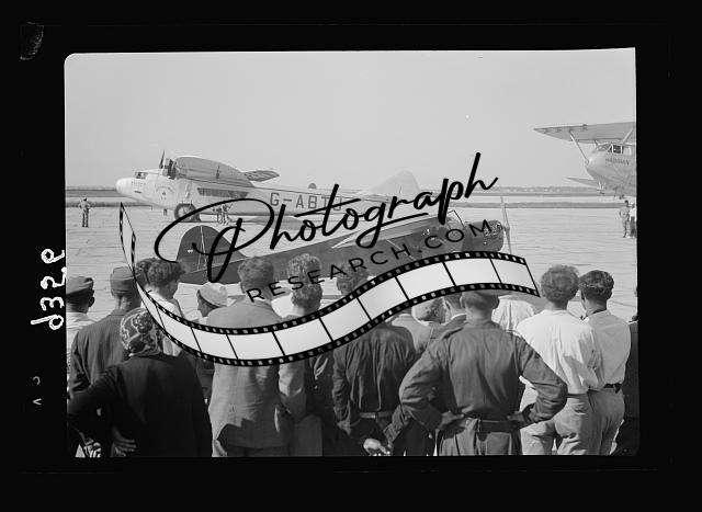 Title: Wings over Palestine-Certificates of Flying School, April 21, 1939. Lydda runway showing air liners, etc., & test plane just taken off [Lydda Air Port]