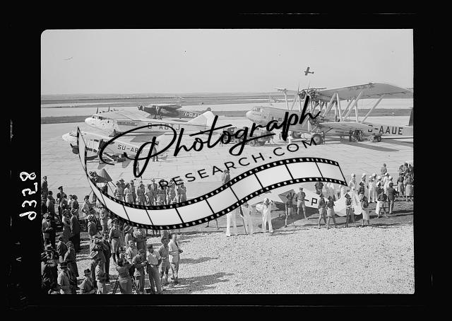 Title: Wings over Palestine-Certificates of Flying School, April 21, 1939. Young pilots who received their flying licenses with instructors [Lydda Air Port]