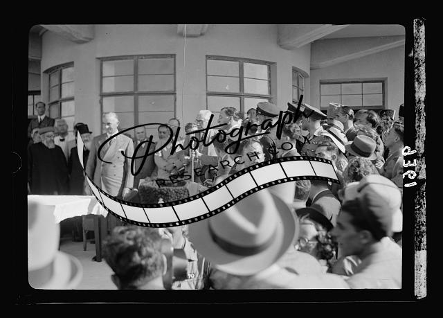 Title: Wings over Palestine-Certificates of Flying School, April 21, 1939. Young pilots who received their flying licenses with instructors [Lydda Air Port]