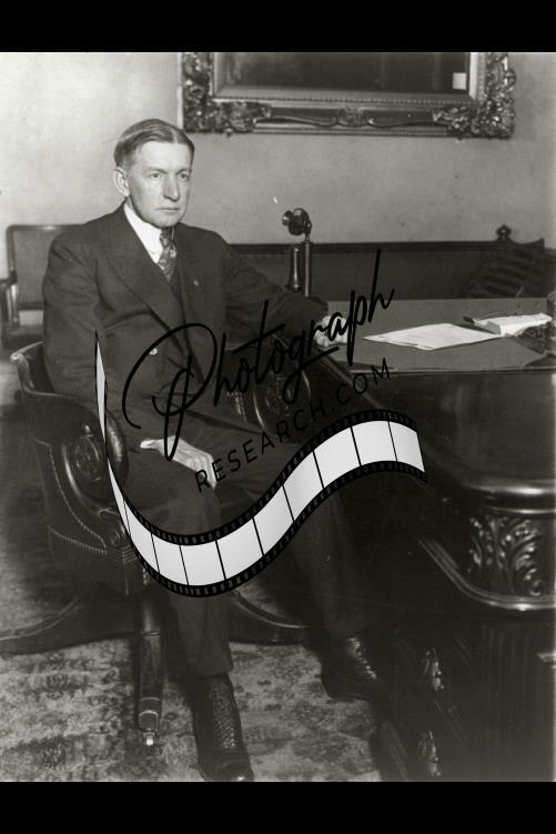 Charles Gates Dawes,1865-1951,seated at desk in Capitol,telephone,banker