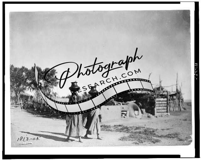 In the village of Santa Clara Pueblo,New Mexico,NM,women carrying jugs on heads