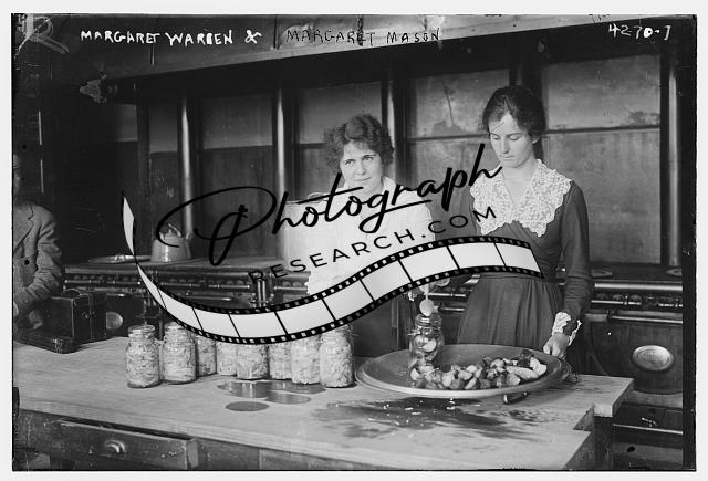 Margaret Warren & Margaret Mason,two women in kitchen,canning food,Bain News