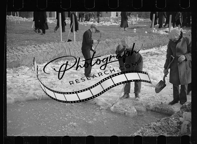 Winter,workers,snow,laborers,groups,Berwyn,Maryland project,Greenbelt,MD,1936 1