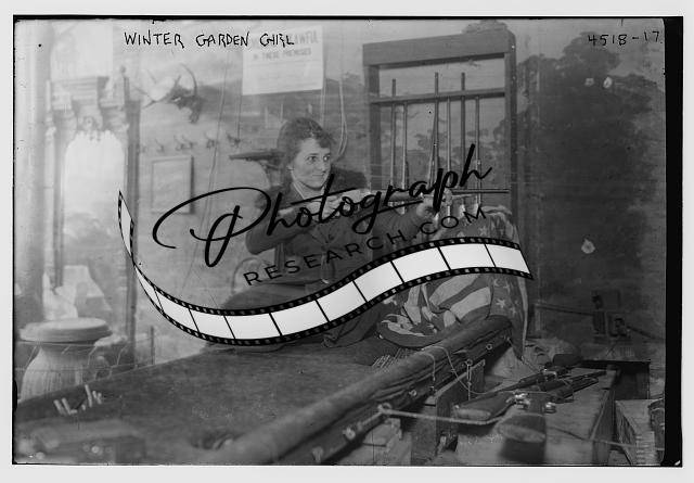Winter Garden Girl,woman pointing rifle,American flag,guns,Bain News Service