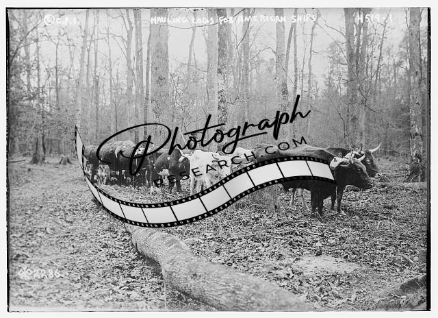 Hauling logs for American Ships,oxen,livestock,trees,Bain News Service