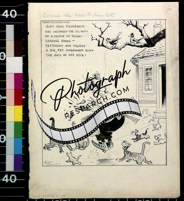Because she keeps so many cats,c1922,Birds,Women,American Cartoon,Humor