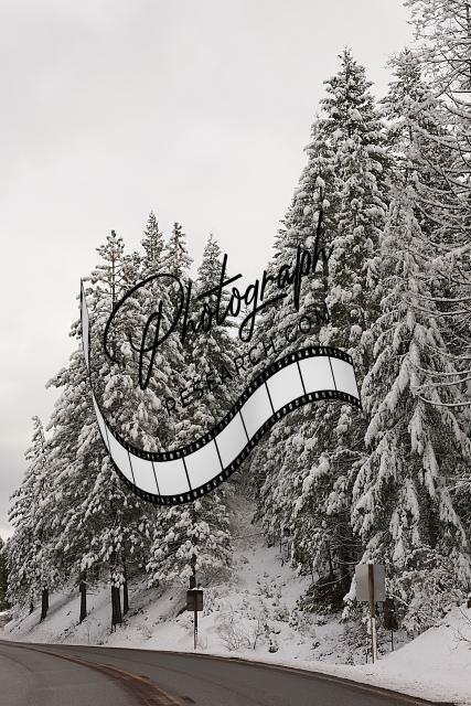 Title: A living sno-globe scene and winter wonderland, created by a sudden mountain blizzard along California Highway 36, south of Lassen Volcanic National Park