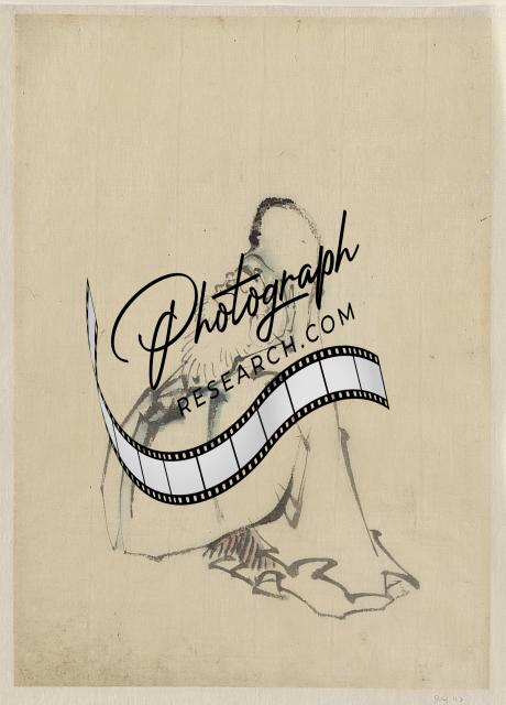 Summary: Nude woman, seated, with turned head, viewed from behind.