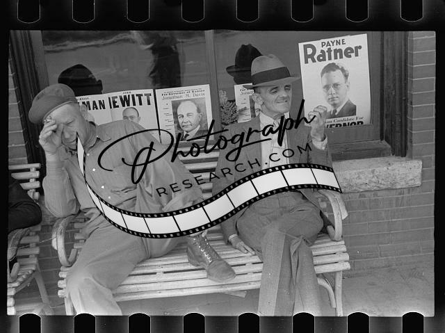 In front of hotel,Oskaloosa,Kansas,KS,October 1938,John Vachon,FSA,Small Town