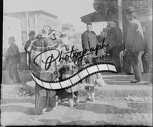 Woman carrying child crossing street,Chinatown,San Francisco,CA,A Genthe,1896 1