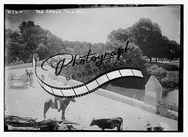 Old Bridge,Tula,Mexico,livestock,people,cart,Bain News Service,water,trees