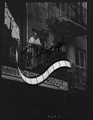 Woman leaning,balcony,buildings,New Orleans,Louisiana,LA,Arnold Genthe,1920
