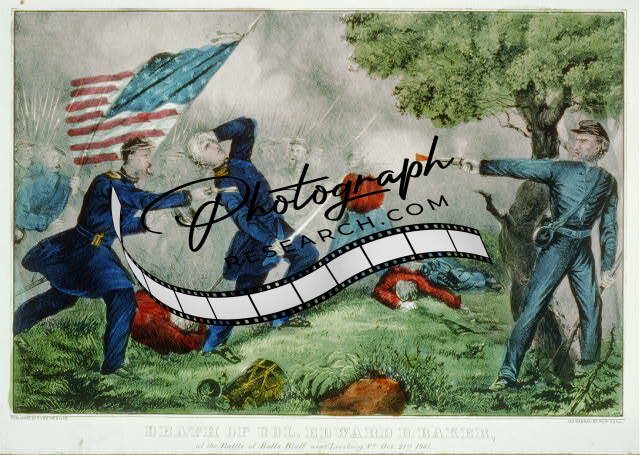 Death of Colonel Eward D. Baker,Battle of Balls Bluff,Leesburg,Virginia,VA,1861