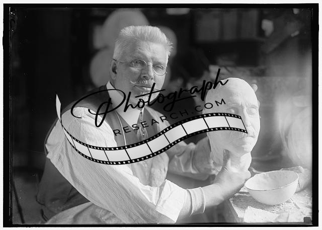 W.S.J. Dunbar with Death Mask of Admiral George Dewey,1917,Harris & Ewing
