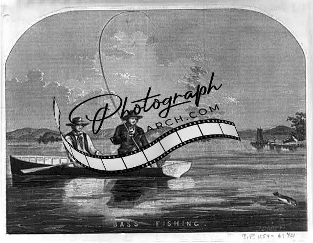 Bass Fishing,2 men in a boat,long fishing pole,1854