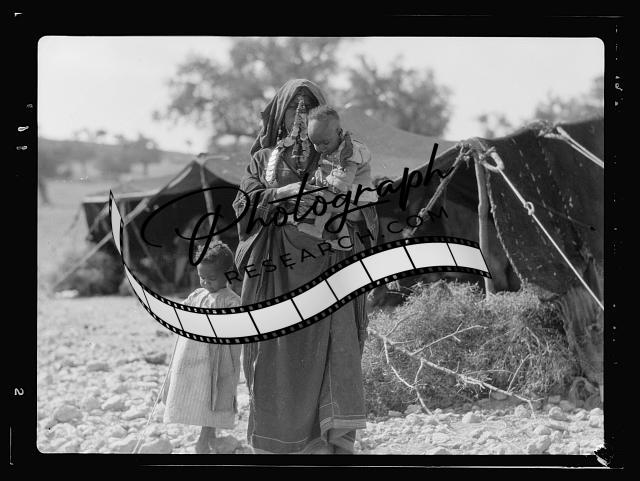 Negroid mother,children,Before their tent home,Beit Jibrin,Bet Guvrin,Israel
