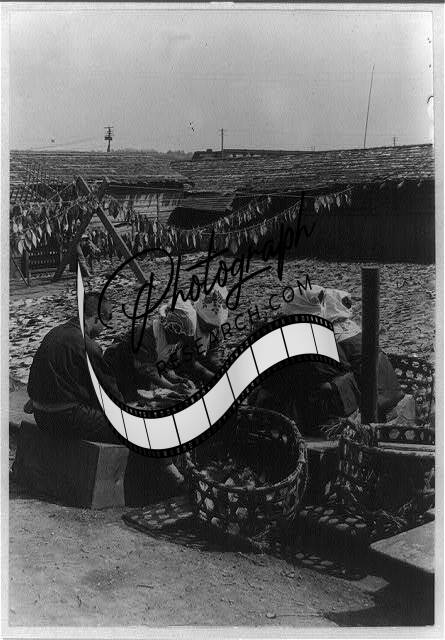 Drying fish,Japan,1890-1923,People,East Asia,fish hanging on line,outdoors