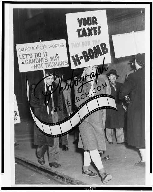 Persons Picketing against use of tax dollars for development of nuclear weapons