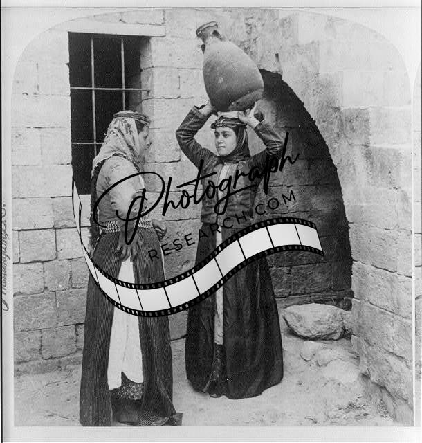 Christian Girls of Nazareth,Palestine,Arabs,Carring Water Jug on Her Head,c1900
