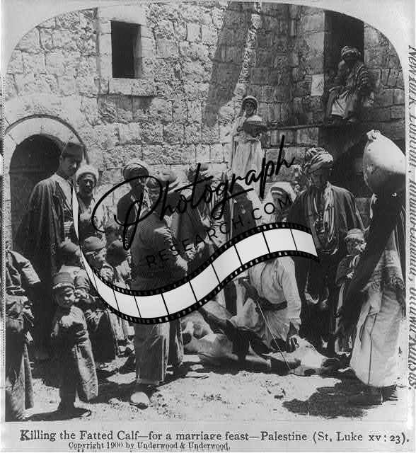 Killing the Fatted Calf,Cow,for Marriage Feast,Palestine,Saint Luke XV:23,c1900