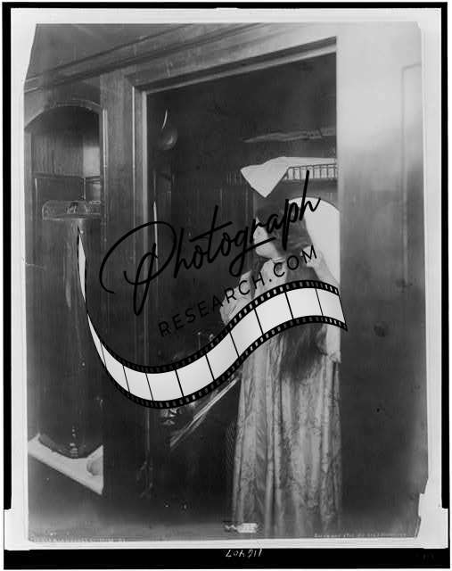 Woman Combing her hair in Ladies' Toilet Room,Tourist Sleeper,Railroad Car,c1905