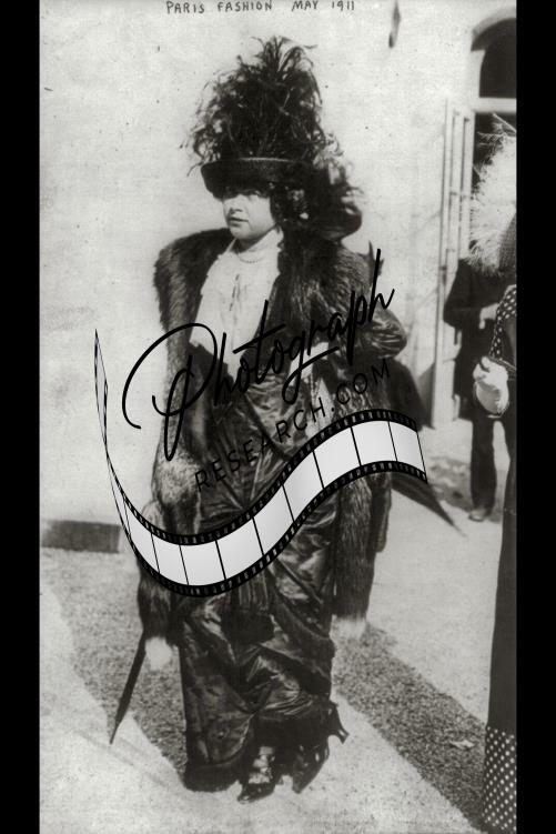 Woman,Fashion,Paris,France,May 1911,fur and plumed hat,heels